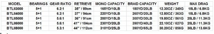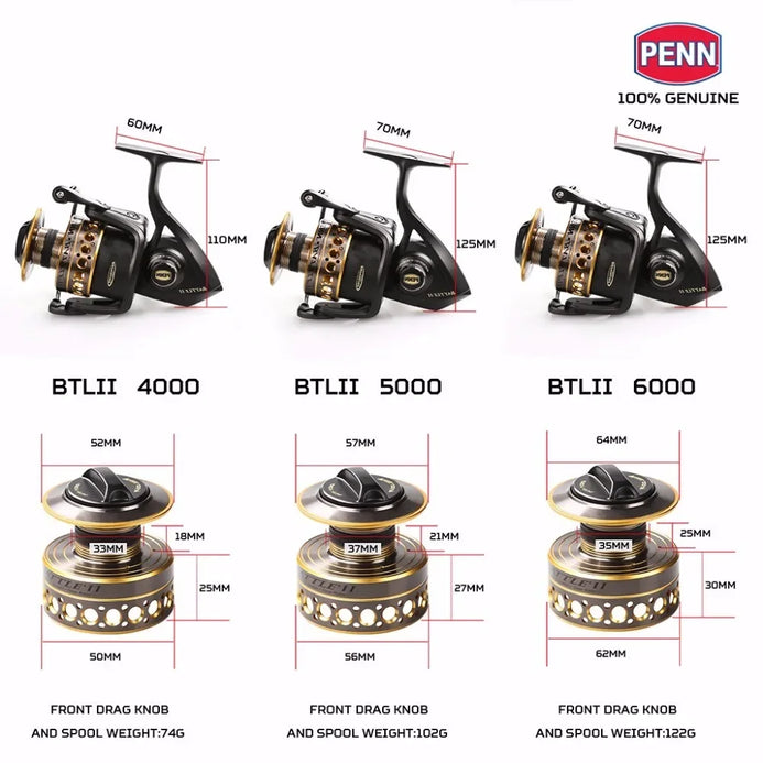 PENN 8 PENN Battle II Spinning Reel 5+1BB 5.3:1 5.6:1 6.2:1 15-30Kg Max Drag PENN BATTLE III DX Spinning Reel 7BB 6.2:1/5.6:1/4.7:1 13.6Kg Max Drag