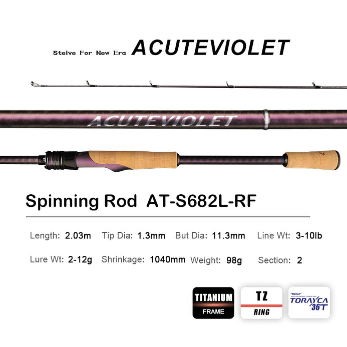 PureLure ACUTEVIOLET Casting/Spinning Rod L/ML/M/MH Action 2PC 1.98m-2.03m