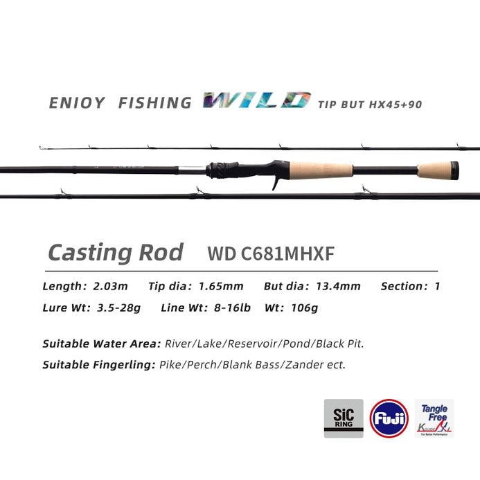 PureLure Wild 1.98m/2.03m/2.13m 1PC L/M·M·MH·ML Casting/Spinning Rod
