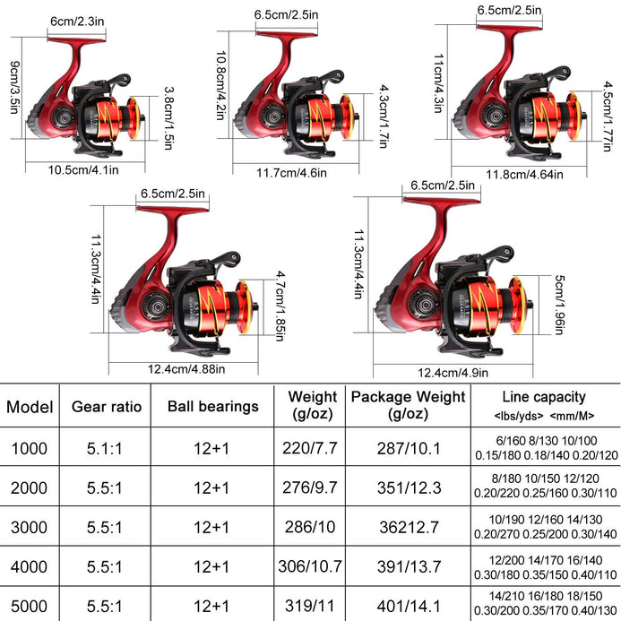 The Sougayilang Innovative spinning reel not only looks good but is well priced yet packed with features to make your time on the water enjoyable. With 12 + 1 ball bearings, 14kg of max drag and your choice of 5.1:1 and 5.5:1 gear ratios, you'll have ample power, speed, and control to take on your favorite fish.