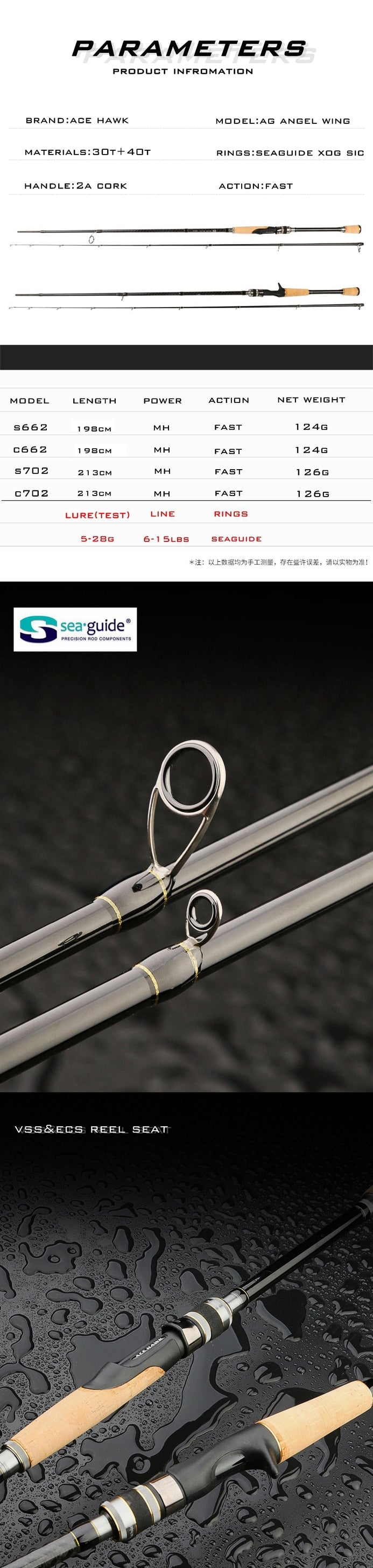 Ace Hawk Angel Wing Series Carbon 2PC Spinning/Casting Rod 1.98m/2.13m Fast MH