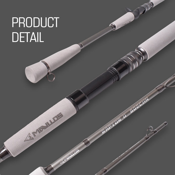 • The Mavllos Raptor II Jigging Casting/Spinning Rod combines strength and flexibility with its carbon construction and versatile design. At 1.8m/5.9ft, it's the perfect length for a variety of fishing techniques. Its medium-heavy weight allows for greater control and precision, making it an essential tool for any angler.