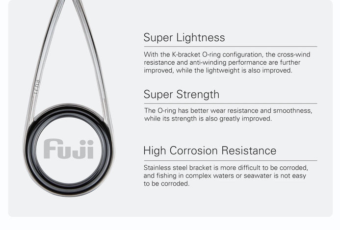 -FUJI "O" ring and "K" guide helping to cast smoothly by its low friction and reduce line tangling to the frame.