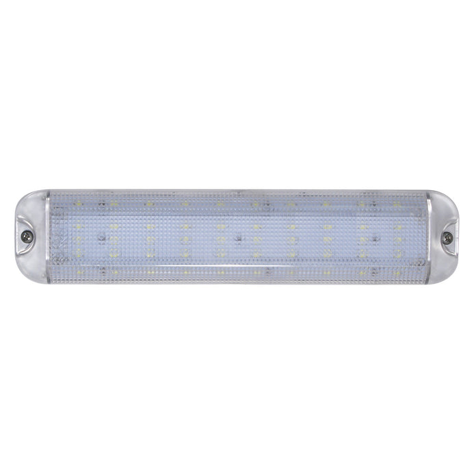 The E-500 is a multi-voltage (12/24V), surface-mounted engine room light that offers an impact-resistant PC lens, which allows the wires to exit straight back through the mounting surface or routed to the side through the end cap. Featuring a total of 50 LEDs, this fixture produces an impressive 1,520 lumens, comparable to a 220W standard bulb. Drawing only 1.5 amps (12V), this fixture is often used in multiple quantities to eliminate any dark spots in the engine room.