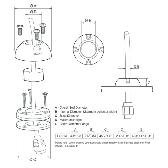 DS21A-S Vertical Cable Seal - Stainless Steel