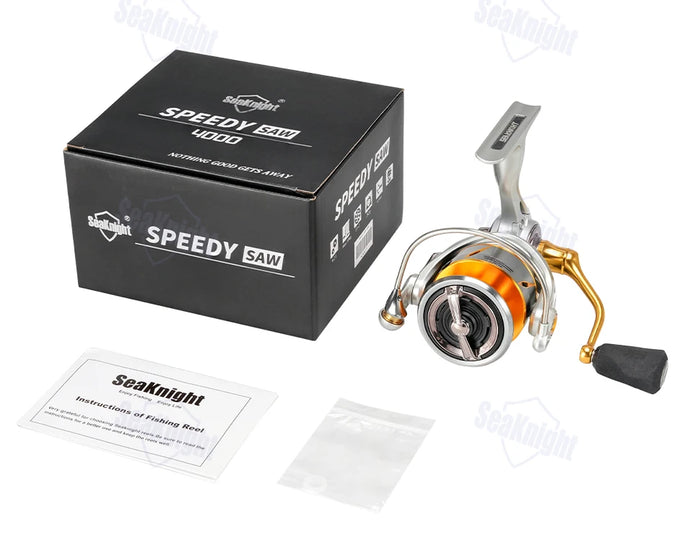 The SeaKnight Speedy SAW Series delivers reliable performance for saltwater and freshwater anglers. Built with a 6.2:1 gear ratio for quick line retrieval and equipped with 10+1 ball bearings for smooth, consistent operation, this spinning reel handles fish up to 9-11kg with confidence. The robust drag system provides dependable stopping power when you're battling larger catches. Whether you're casting from shore or boat, this reel combines durability with responsive mechanics to keep you connected to what matters—landing your next great catch.
