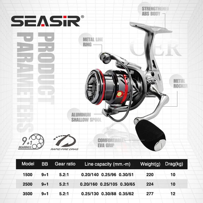Seasir Mercury BC Baitcast Reel 5+1BB 7.2:1 204g 8kg Drag Seasir OER Spinning Reel Max Drag 12Kg 9+1BB 5.2:1 Ratio Seasir P-Series Prospec Carbon Spinning Reel 8+1BB 5.2:1/6.2:1