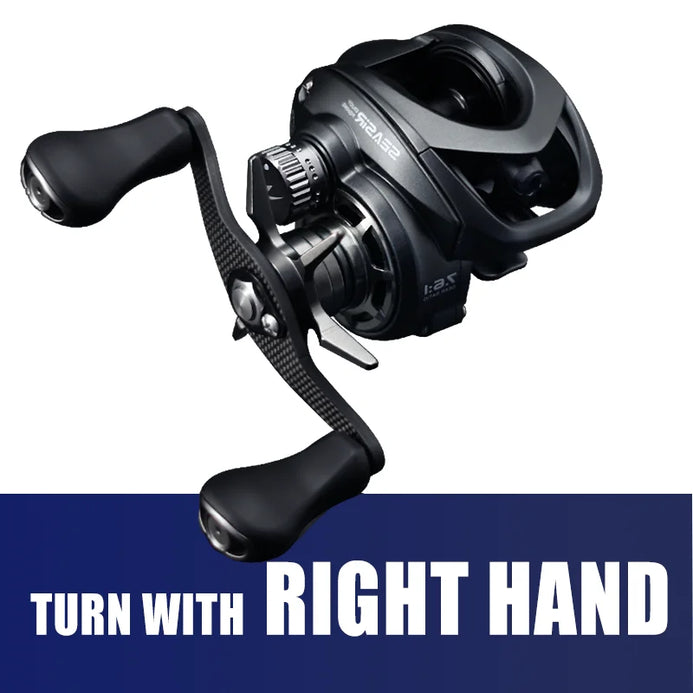 Highly rigid metal frame with carbon fiber side covers on both sides. Greatly enhanced strength and anti-twisting ability. Easily handle big fish. Reel is more durable.