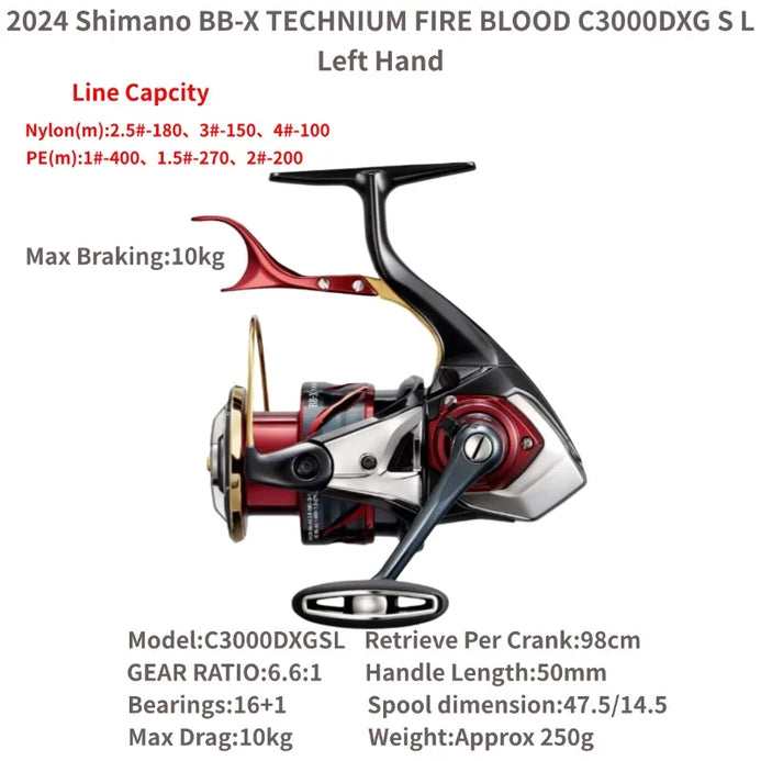 The BB-X TECH, which has undergone significant evolution, is adorned with the FIREBROOD exterior skin, symbolizing passion for rock fishing. The 2024 limited edition model is officially launched. Equipped with advanced technology represented by SUT BRAKE II, including HAGANE body and gears, MGL ROTOR and other proud technologies of SHIMANO handbrake wheels, this fishing wheel with high unloading feedback capability has been obtained. Smooth unloading can better exert its power when using thin wires. Faced with unexpected bites, it is possible to maintain a stalemate with the target while protecting the fishing line. There is only one specification for the fishing cup, C3000, while there are two speed ratios, XG and XXG, with a distinction between left and right hands, making it easier for anglers to choose their preferred specifications.