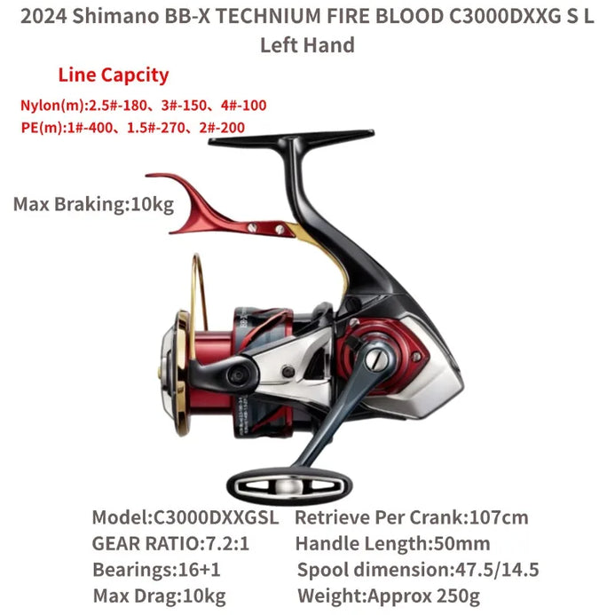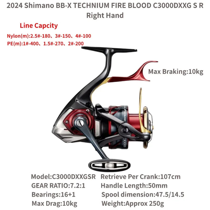 Shimano BB-X TECHNIUM FIRE BLOOD (2024) Spinning Reel 16+1BB 7.2:1 6.6:1 10Kg Max Drag