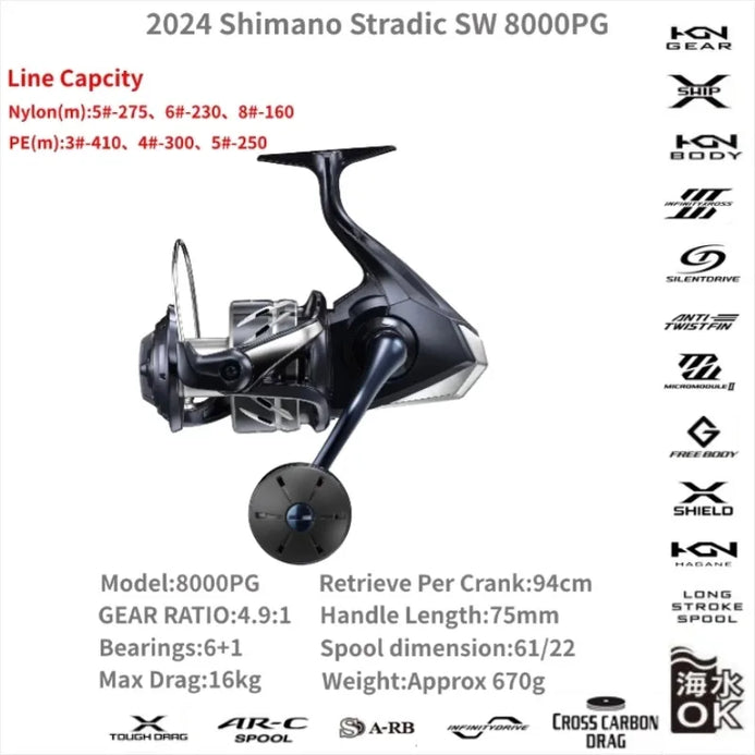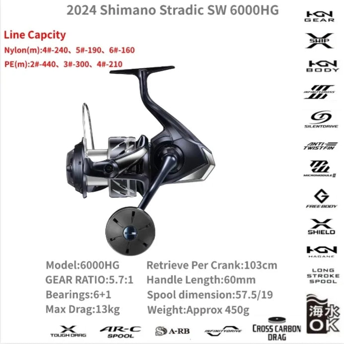Shimano STRADIC SW Spinning Reel (2024 Version) 6BB+1RB 5.7/6.2/4.6/4.9/5.6