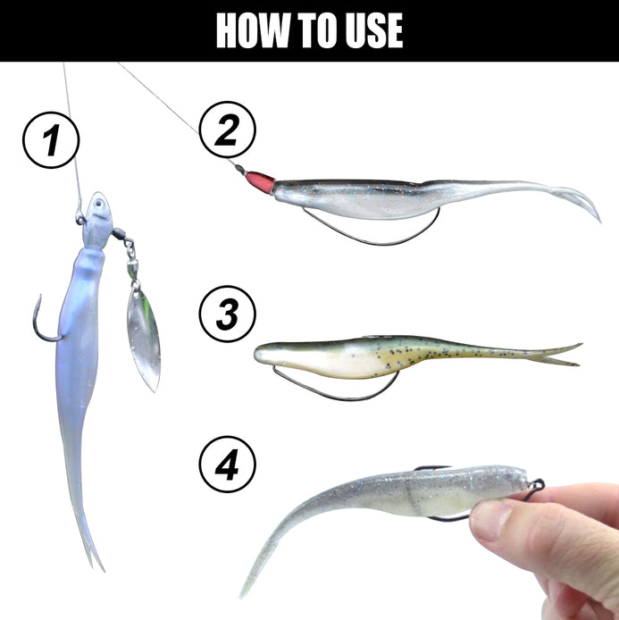 Soft jelly-like baits made of TPR, this Jerk Minnow can be rigged on the back of a bladed swim jig, spinnerbait, scrounger, shakey head, or by itself for a slow-gliding action.