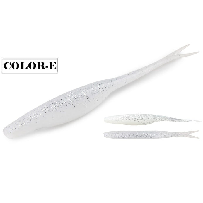 These soft plastic jerk baits have a slim streamlined body, tapering to a sensitive, forked tail. It has a generous belly slot underneath, along with a groove on it's back to aid rigging.These lures can be worked in a number of ways, you can drift them with the occasional twitch, work them with a smooth gliding action or jerk them back for more erratic movement, similar to an injured or distressed baitfish. They also work very well on a jig head in deeper water. Excellent lures for zander, pike, perch, bass and pollack.
