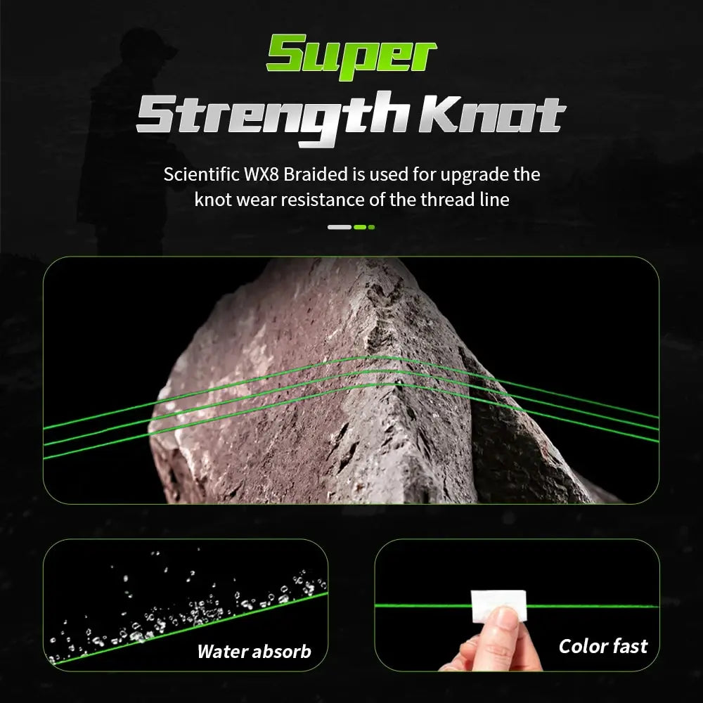 • 8 Strand PE Braided Material :Constructed with 8 strands of PE braided material, this fishing line offers high strength and durability, ensuring long-lasting performance.