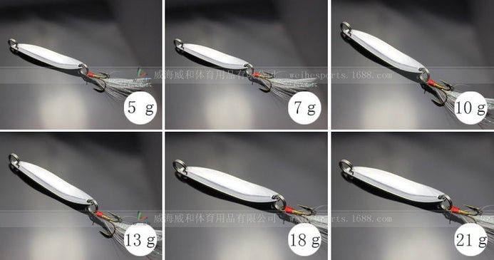 1Pcs 5g/7g/10g/13g/18g/21g Metal Spoon with Feather Sequin Treble Hook
