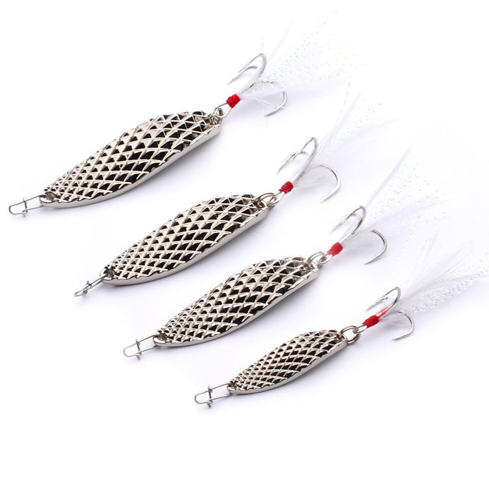 Proleurre 1Pc 7g 10g 15g Gold/Silver Spoon With Feathered Treble Hook