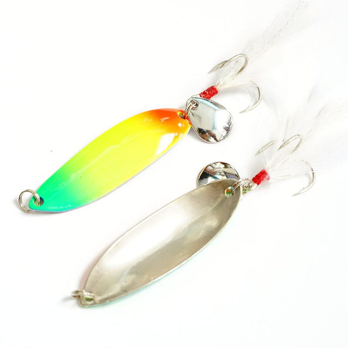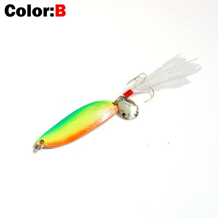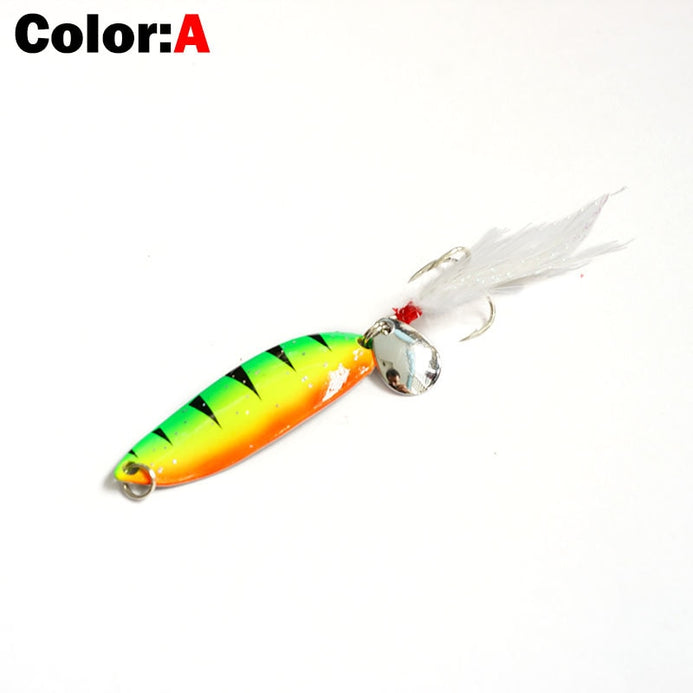 Description :OUTKIT Metal Spoon Lure 5g/9g/13g/18g/21g Saltwater Fishing Lure With Feather Laser Body Sinking Bait For Carp Fishing Bait