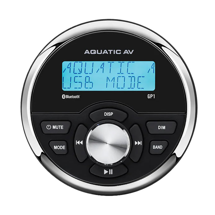 Experience superior audio with the compact GP1 Marine Stereo, designed to fit perfectly into a standard dash gauge space. Its powerful 288-watt amplifier can drive up to 8 speakers or subwoofers simultaneously. Enjoy versatile connectivity with Bluetooth, USB, MP3, AUX, and AM/FM radio. Built to withstand harsh marine environments, the GP1 offers high-end audio quality and effortless installation in areas exposed to water, chemicals, or other hazards.