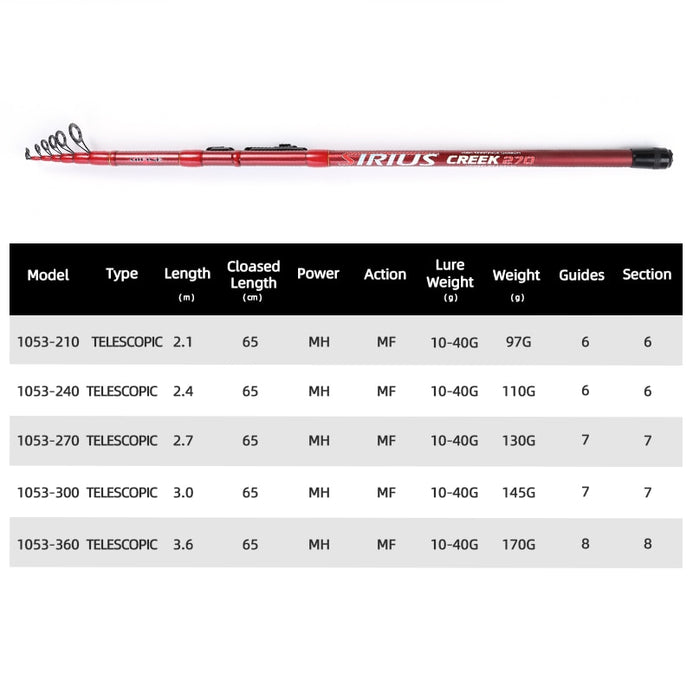 MiFiNE SIRIUS CREEK Telescopic Rod 2.1M/2.4M/2.7M/3.0M/3.6M MH