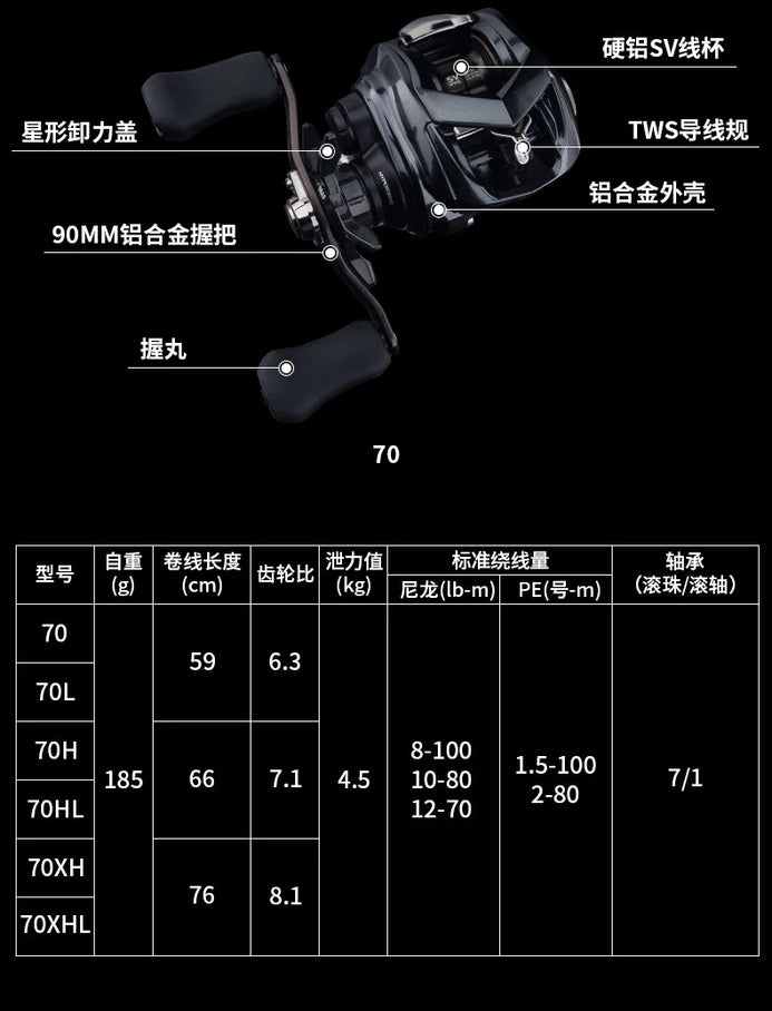 Daiwa Tatula TW SV 70 Baitcast Reel (2022 Version) 7+1BB Drag 4.5KG Weight 185g