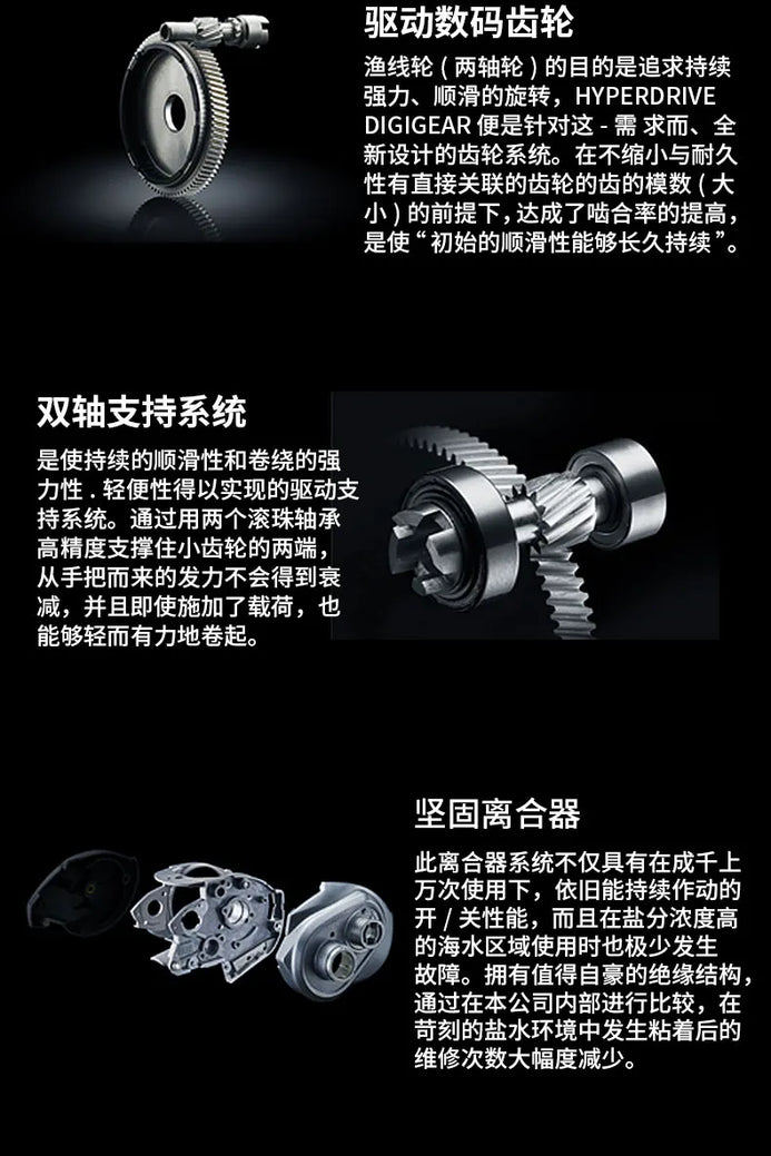 • Hyper Drive Design – Includes reinforced aluminum frame, Hyper Drive DigiGear (brass), Hyper Double Support, and Hyper Tough Clutch for ultra-smooth torque and durability.