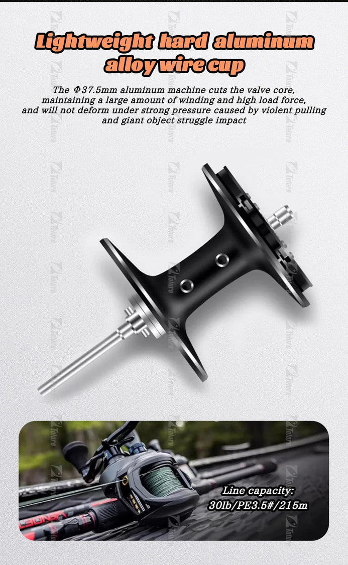 • Carbon Fiber Frame & Side Plates: Lightweight yet ultra-strong construction resists flex under heavy loads while keeping the reel comfortably balanced.