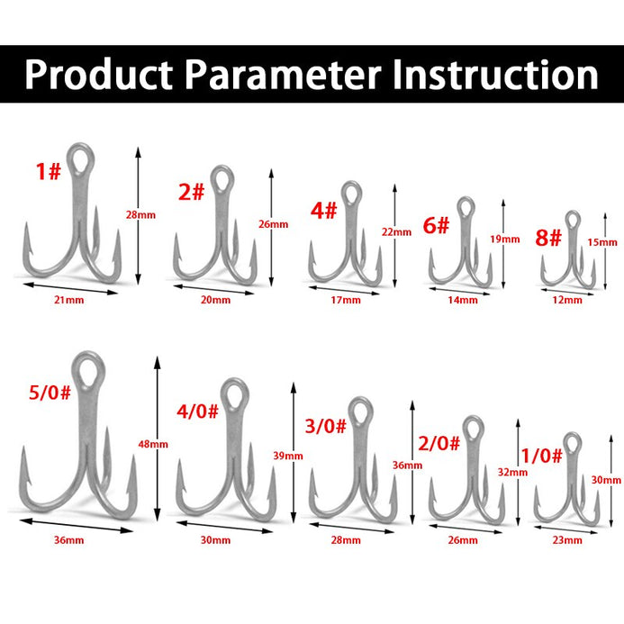 Treble Fishing Hook Set Sizes - 50pcs/lot