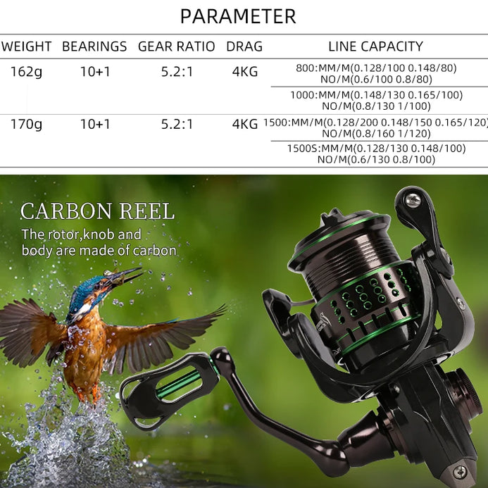 Tsurinoya Kingfisher Ultralight Spinning Reel 10+1BB 5.2:1 Ratio 4Kg Max Drag