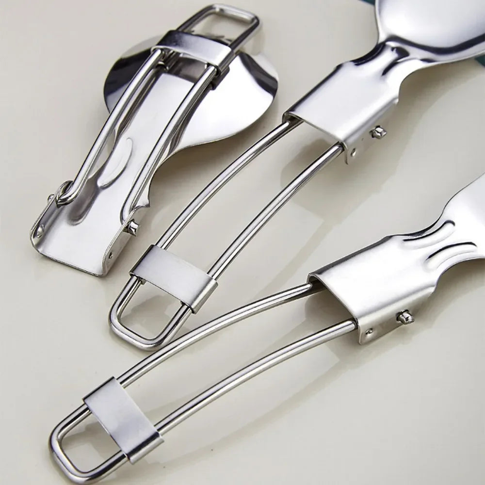 Titanium 2-in-1 Folding Spoon/Fork 3PC Portable Tableware Set 304 Stainless Titanium Outdoor Tableware Set 3PC/4PC