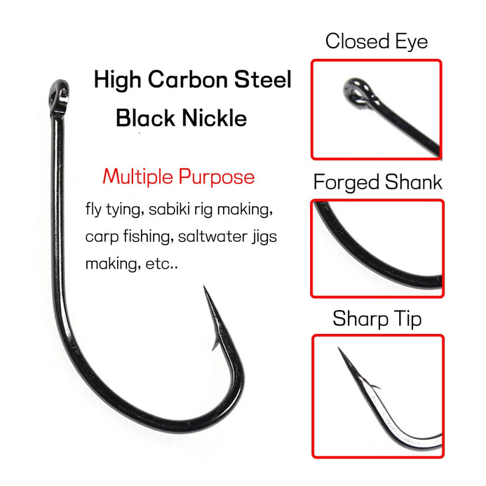 The hook could be applied for various purposes: fly tying, sabiki rig making, carp fishing, saltwater jigs making, etc..