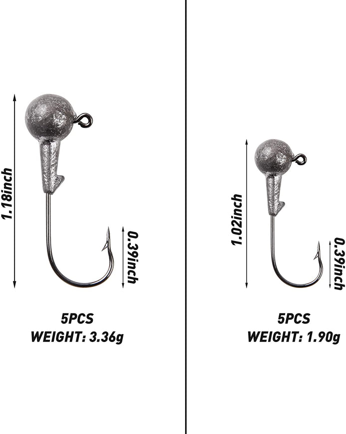 Package Includes: 100pcs Tube Lures, 5pcs 3.3g Jig Heads, 5pcs 1.6g Jig Heads