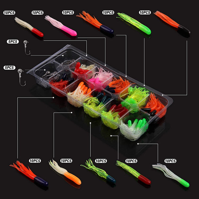 Hyaena 110pcs Soft Plastic Tube Baits with Jig Heads Set