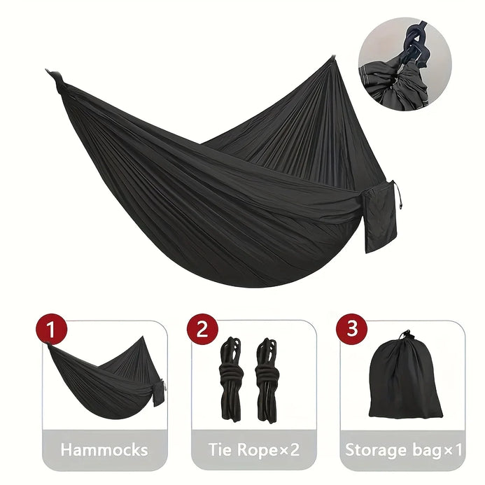 Perfect for outdoor enthusiasts and casual loungers alike, this lightweight hammock set combines comfort, durability, and portability so you can relax wherever the day takes you.