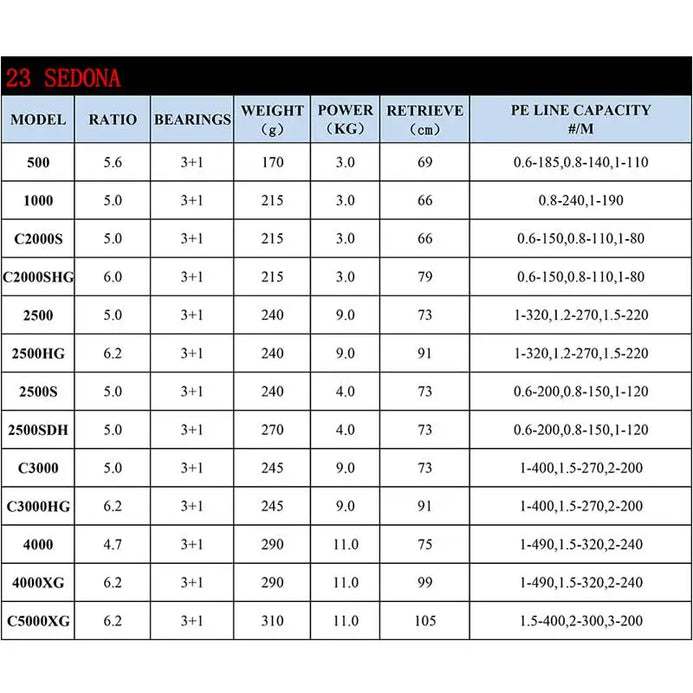 Shimano Sedona (2023) Spinning Reel 5.0:1/6.2:1/4.7:1 Ratio 3+1BB HAGANE GEAR 3-11KG Power