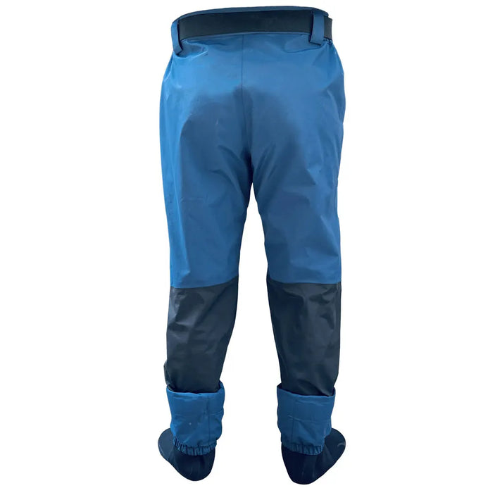 Waterproof main zipper with with outer protective flap,2 exterior pockets with a YKK water resistant zipper.Elasticated zones in waist line,keep waist wader fit your waist.wading belt and repair kit include.