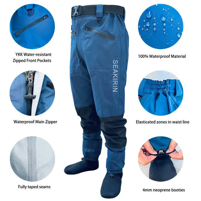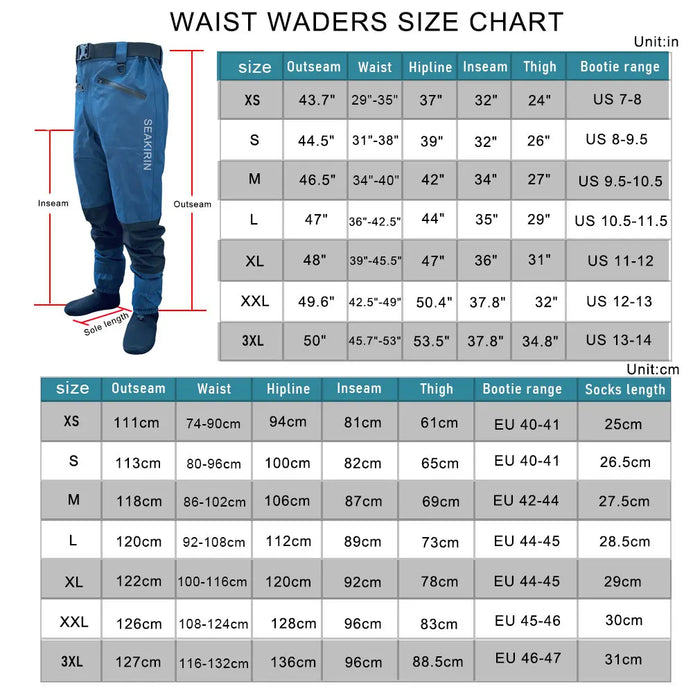 Take on the unknown with the Seakirin 4-Layer Waterproof Waist Wader! This durable wader features 4 layers of waterproof protection, keeping you dry and comfortable during your adventures. With its lightweight and breathable design, you'll be ready for anything the water throws your way.