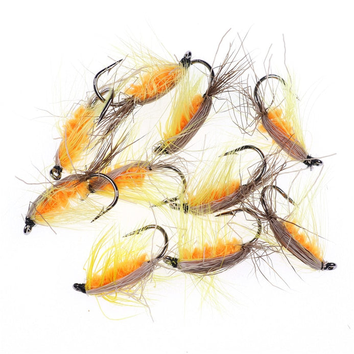 - 6/10Pc Lot #12 Woolly Worm Brown Caddis Nymph Fly Fishing Lure