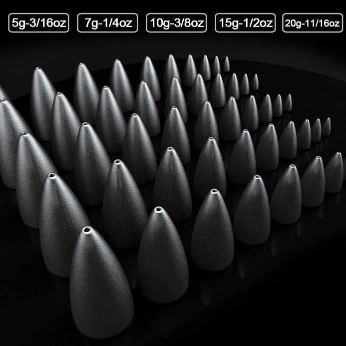 The bullet shaped fishing weights work perfectly when sinking with less resistance, drop to the preferred water column quickly.