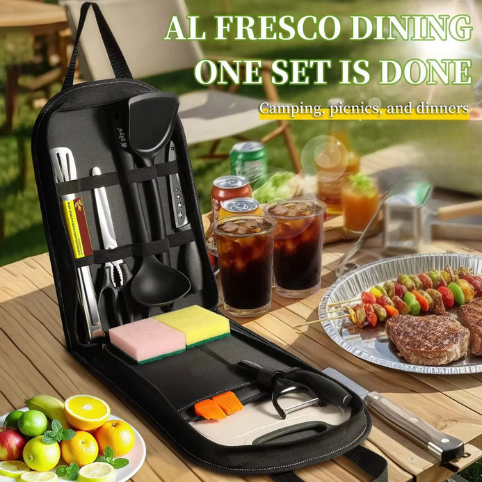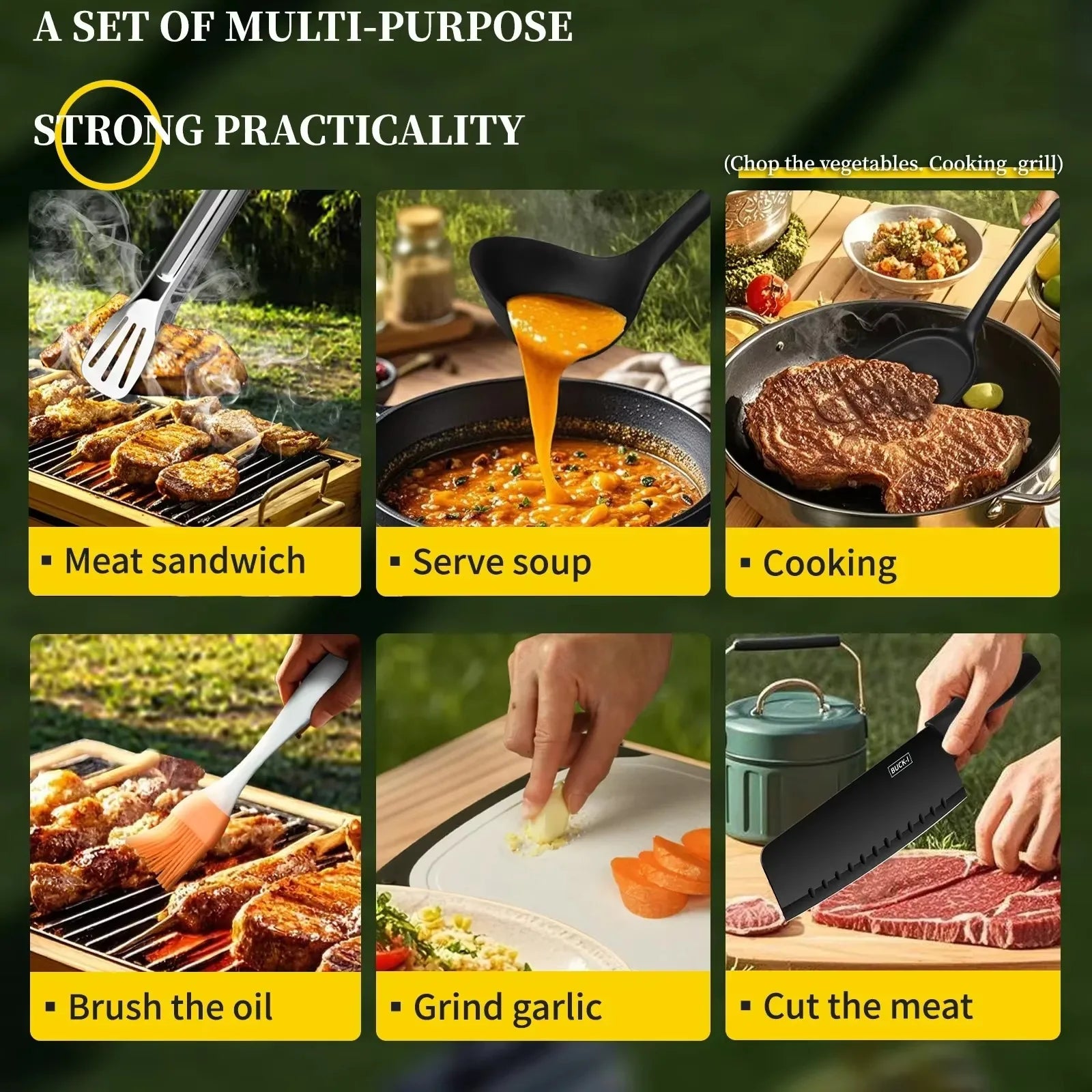 【Your Ultimate Outdoor Cooking Companion】- Dine Al Fresco with Ease! Perfect for hiking, picnics, or backyard BBQs. This set makes outdoor cooking simple, organized, and enjoyable. Embrace the freedom of al fresco dining anywhere!