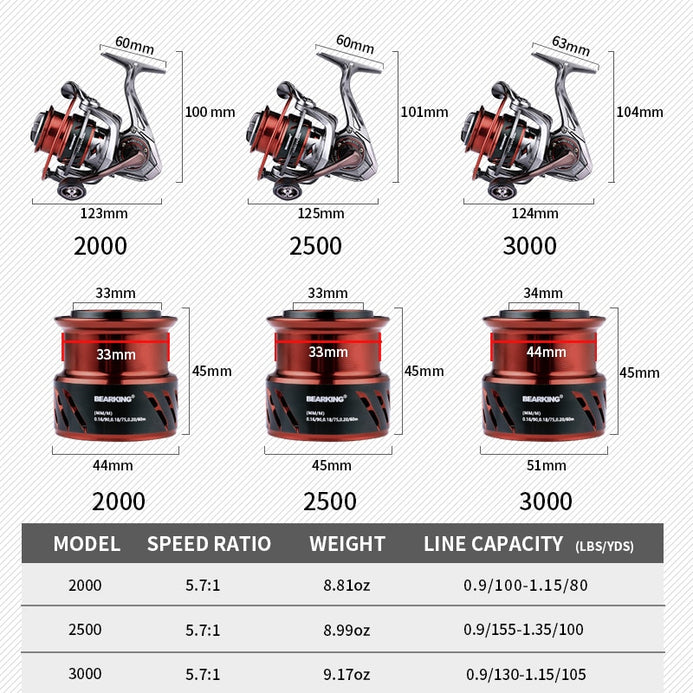Zeus 3000 | Gear Ratio: 5.7:1 | Weight: 9.17oz | Bearings: 9BB | Max Drag: 7KG | Line Capacity(LBS/YDS):0.9/130-1.15/105