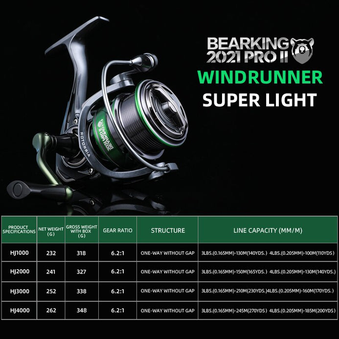 BearKing HJ WINDRUNNER PRO Series 7BB 6.2:1 17lbs Max Power Spinning Reel