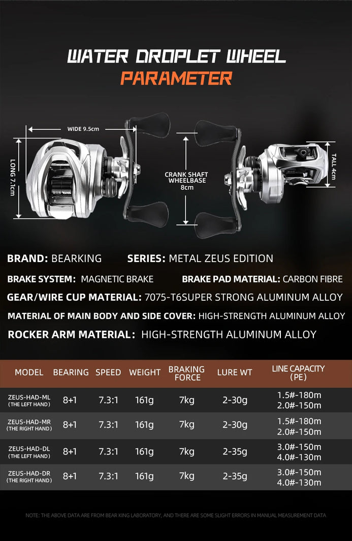 BearKing Zeus Pro Carbon BFS Baitcast Reel 8+1BB 7Kg Max Power 7.3:1