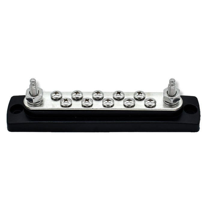 With a 150 amp capacity, this 10-terminal electrical busbar offers efficient power distribution in mid-sized applications. It provides a durable, marine-grade solution for clean circuit organization and grounding.