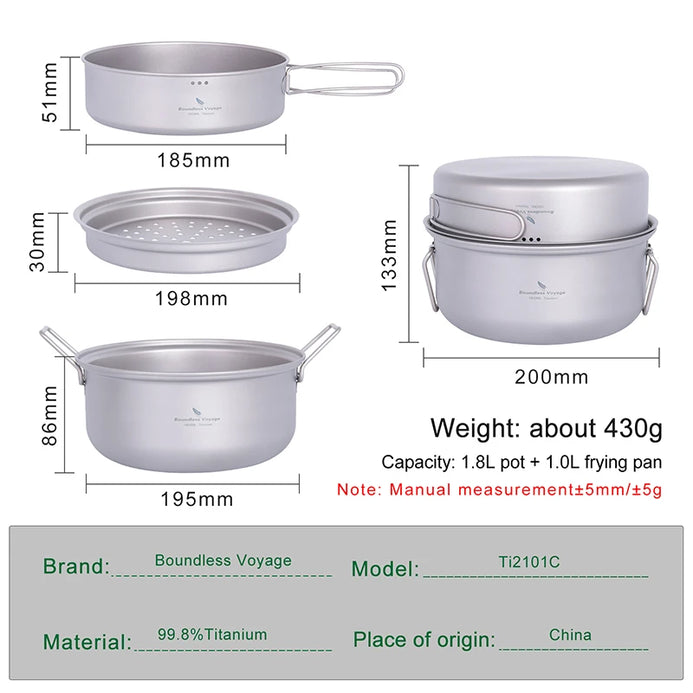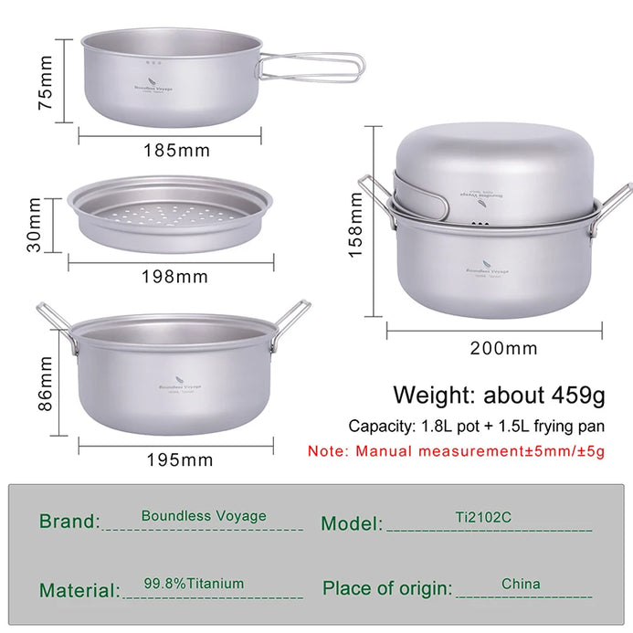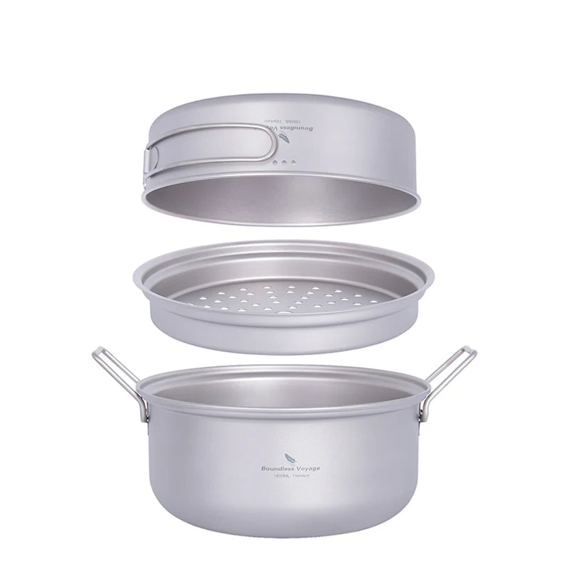- Boundless Voyage Ultralight Titanium Steamer Stockpot and Fry Pan Set