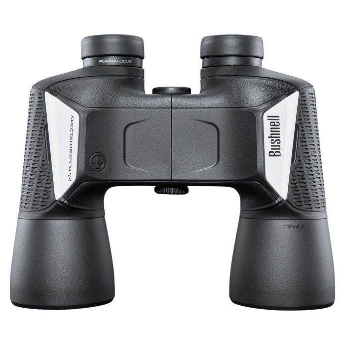 Bushnell Spector sport binoculars, 12x50mm. Features: - keeps distant objects in focus, eliminating need for constant adjustment - four color tiles included to customize your binocular - waterproof construction - Nitrogen purge - lead free glass - multi coated optics. Specifications: - magnification: 12x50mm - Prism system: porro - Prism glass: BaK-4 - field of view at 1000 yards: 265' - close focus: 200' - exit Pupil: 4.20mm - eye relief: 11mm - eyecups: twist-up - length: 6.30 inch - weight: 31 oz - finish: black