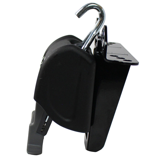 Ladder rack users can permanently mount the CargoBuckle Ladder Rack Tie-Down System to their truck racks. Valuable equipment is held securely with 7 feet of professional-quality 2′′ web and a strong double J-hook. The strap automatically retracts out of your way when not in use. The Ladder Rack Tie-Down System includes the CargoBuckle Retractable Ratcheting Tie-Down, the ladder rack universal mount adapter, and mounting hardware.