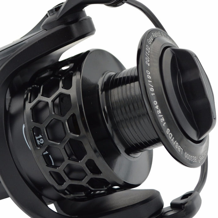 - CNC (Computer Numerical Control) machined aluminum spool with Carved Honeycomb Holes makes this fishing reel more beautiful and lightweight