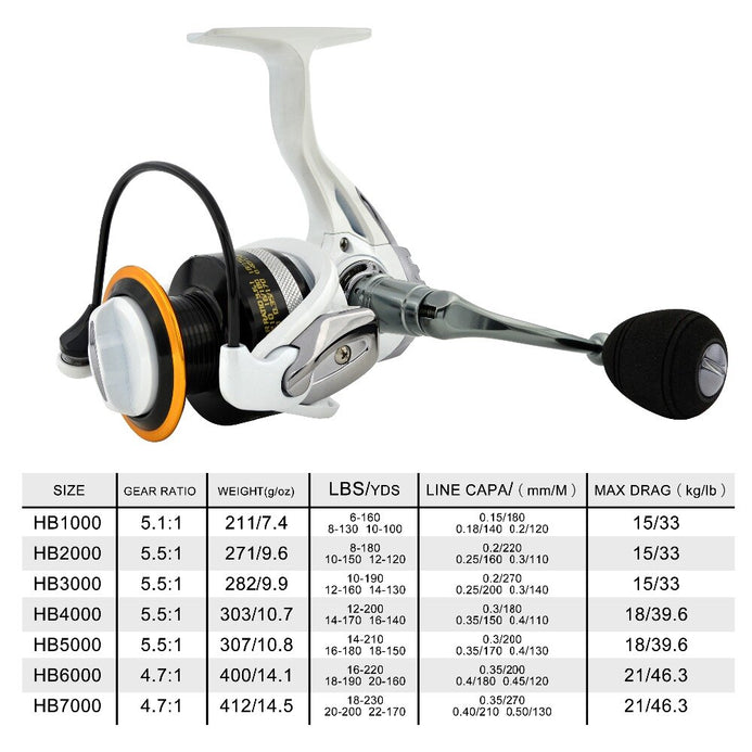 Fishdrops XLHB Spinning Reel 5.5:1/5.1:1/4.7:1 12+1BB 19Kg Drag