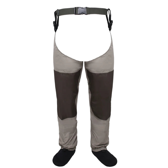 Designed for shallow wading, keeps you your lower legs dry from the foot to the knee . Made of Three-ply waterproof and breathable fabric with a laminate upper, provides flexibility and durability for all day walking and wading comfort. Interior built in cinch strap just below the knee provides a secure fit and prevents water from entering the foot area while wading or hunting. 4-mm neoprene stocking foot bed; easily fits into your wading boots with built-in gravel guards. Versatile uses, great for hunting in marshes or tall grass, keeps feet and legs dry, great for john boats, kayaks, canoes and drift boats too!