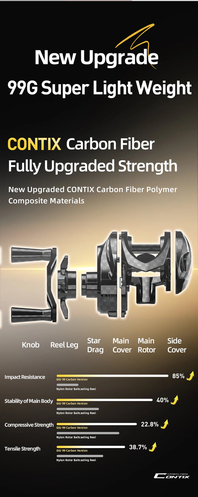 Upgraded CONTIX carbon fiber polymer composite construction | 99G ultra-lightweight design | Enhanced structural integrity with 30% increased tensile strength.